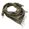 Военная арафатка – универсальная мода в стиле милитари. Военная арафатка насыщенного тёмно-зелёного цвета с чёрным принтом для военных и гражданских. Предназначена для защиты от жары, холода, ветра, снега и песка в любой сезон года. Этот стильный арабский платок покорил с 2000 года весь мир. Сейчас его носят десятки знаменитостей, и ведущие кутюрье мировой моды неизменно включают арафатку в модные ансамбли одежды, демонстрирующиеся на подиумах мирового уровня. А ведь мужской платок, заимствованный миром у жителей арабских стран, изначально оценили военные, для которых арафатка стала не просто деталью одежды, а элементом военной формы, помогающим выжить в сложнейших военных условиях. Арафатка у военных: многофункциональный платок на все случаи жизни. Этот мужской платок, столь модный у арабов, благодаря своей красоте, стильности и функциональности уже давно заметили и оценили военные разных стран. Она защищает солдат от ночного холода и дневной жары, от песка, знойных солнечных лучей, от ветра, дождя и снега.