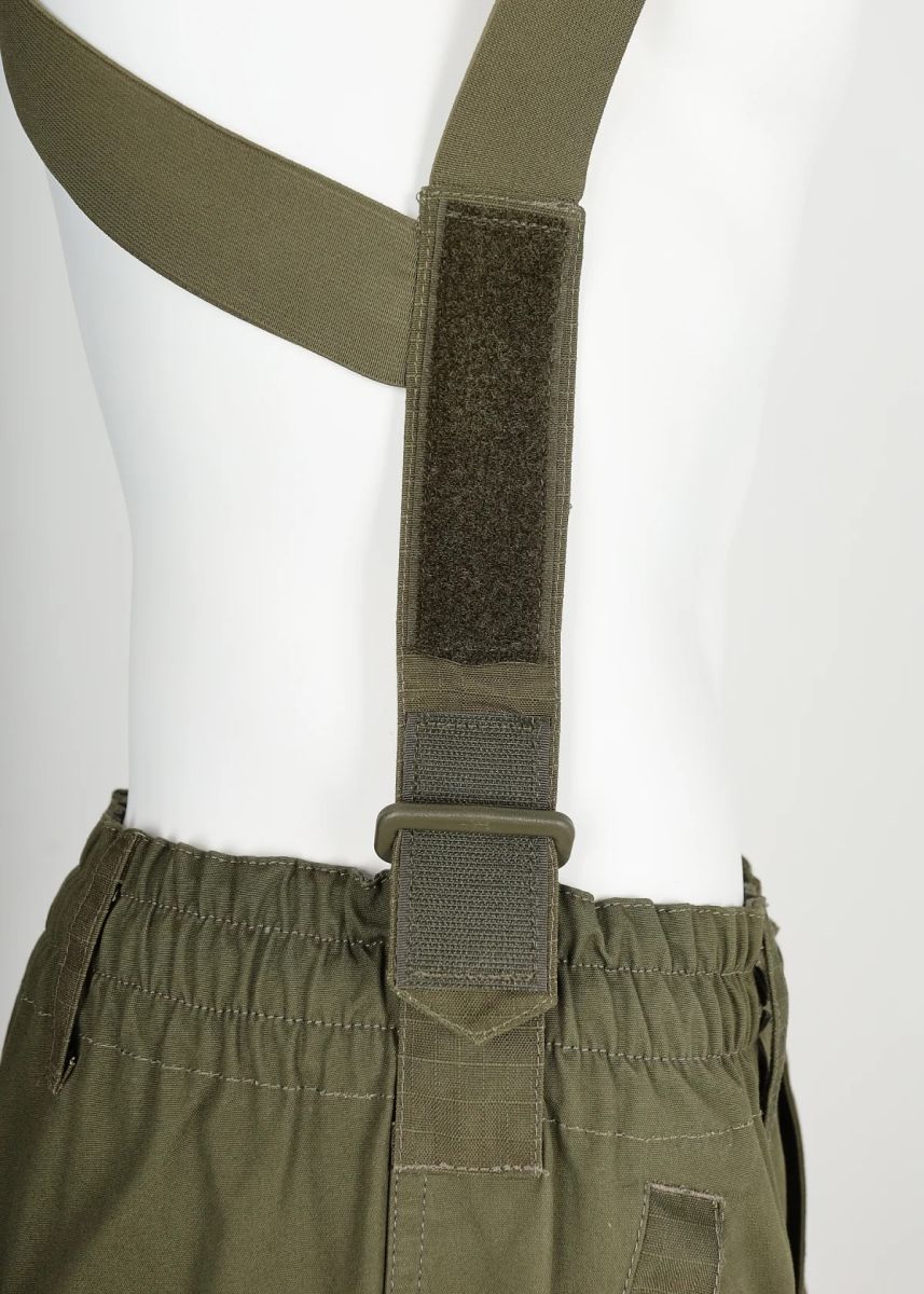 Низ брюк и область икр утягиваются встроенными нерегулируемыми 20 мм резинками. Внутренняя сторона низа брюк усилена накладками из синтетической ткани.