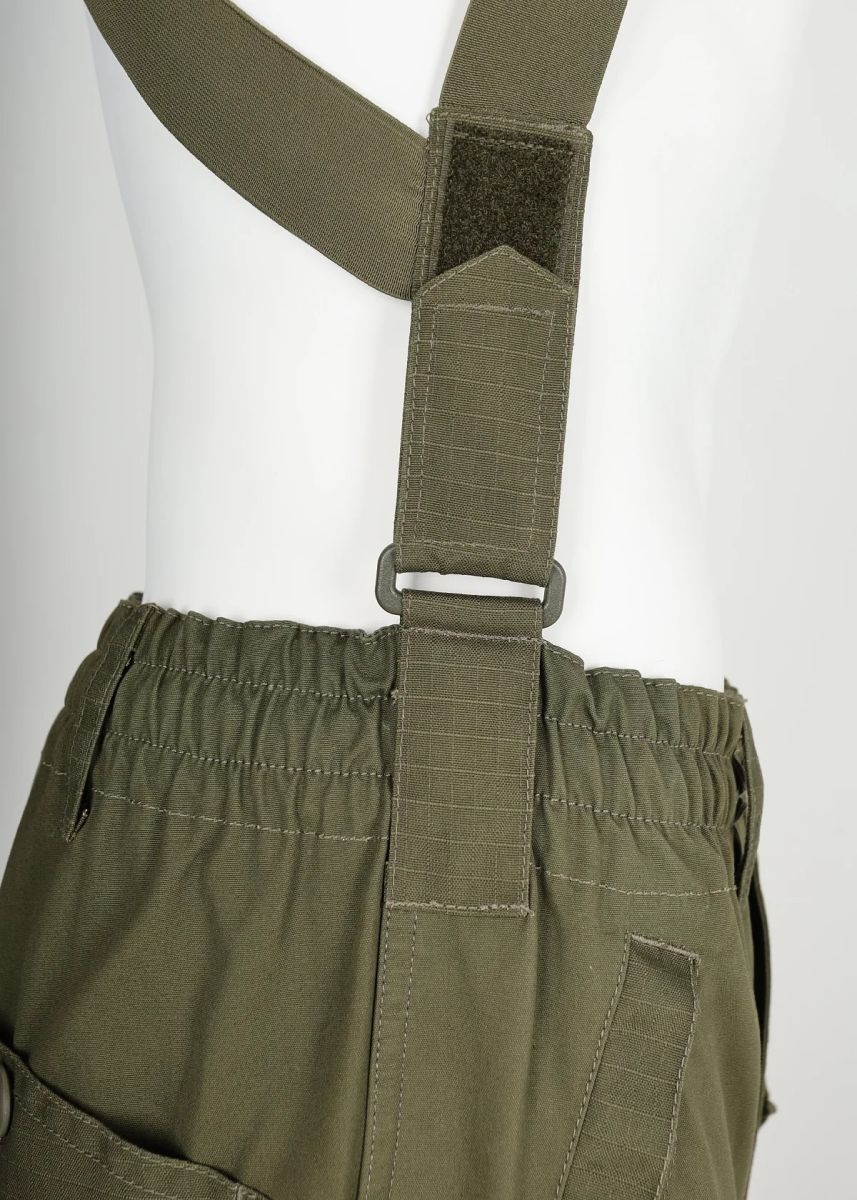 В комплекте съемные подтяжки из 40 мм резинки, с регулируемым по высоте креплением липучками по бокам пояса. Можно отстегнуть подтяжки от брюк прямо на себе, не снимая куртку