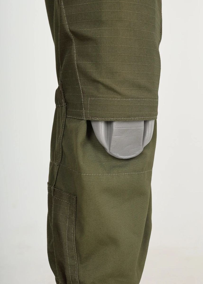 Усиления коленей накладками из синтетической ткани. Внутрь в специальные отделения застегивающиеся на липучку устанавливаются идущие в комплекте формованные вставки из пенополиэтилена, также возможна установка ударопоглощающих наколенников D3O (покупаются отдельно!)