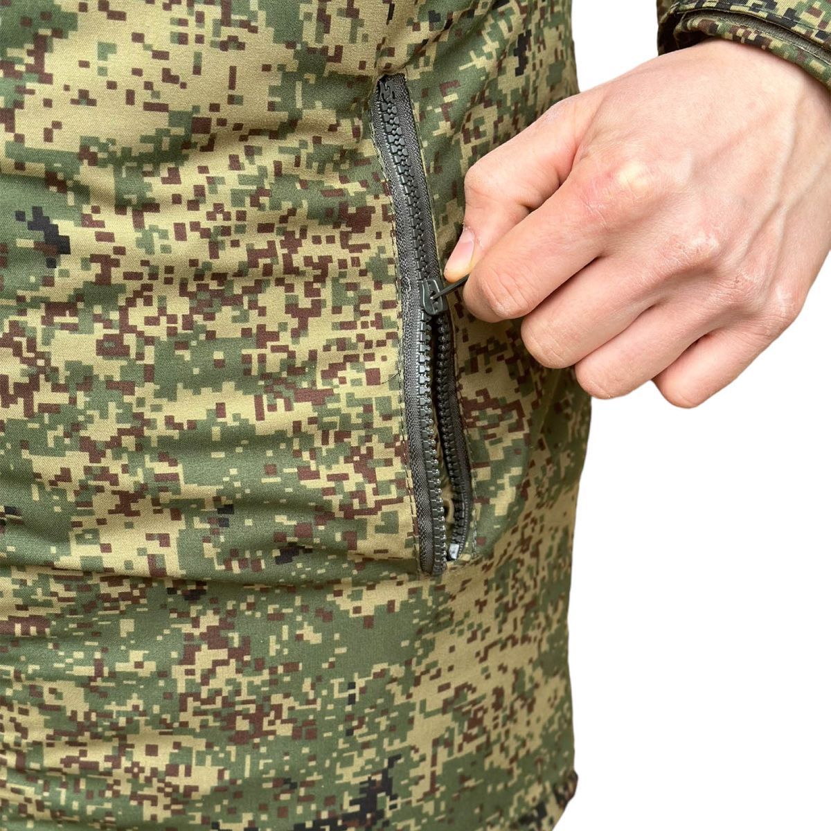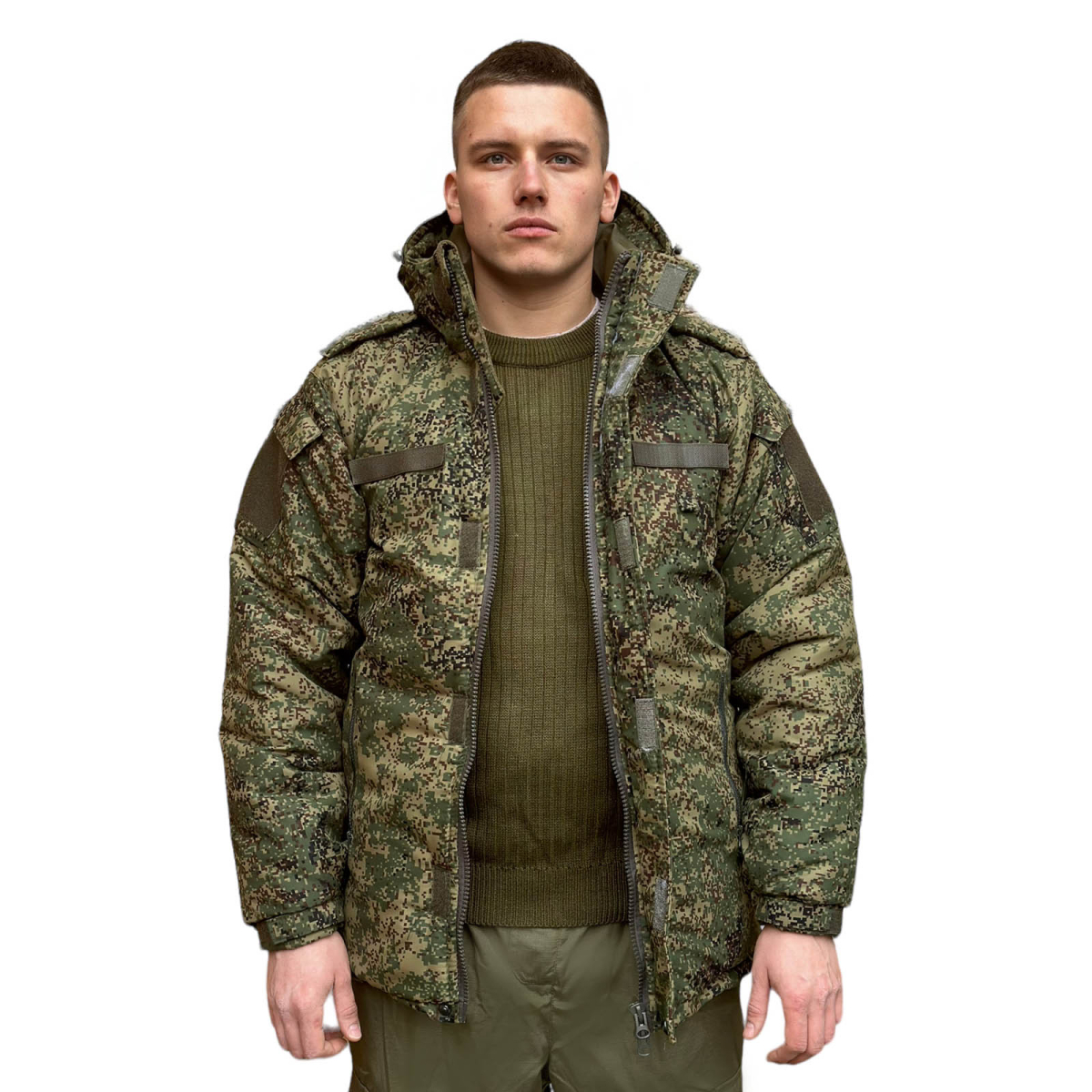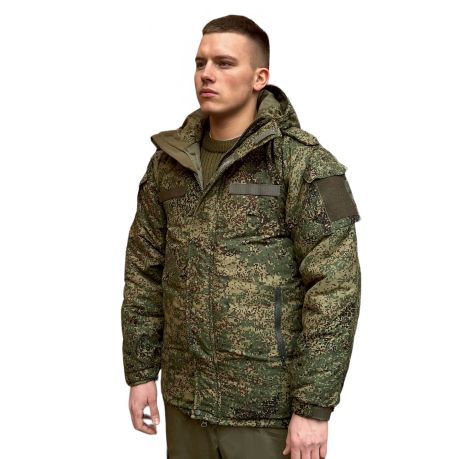 Бушлат обеспечивает наилучшую защиту от холода и ветра в зимнее время года. Он имеет камуфлированную окраску "русская цифра", что делает его незаметным на фоне окружающей среды.