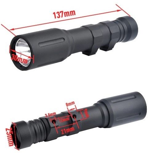 Наствольный фонарь PLH-V2 1300 Lm (черный) - Фонарь адаптивен для крепления на 20 мм рельсу или планку Пикатинни M-Lok. Питание от Li-ion батареи 18650 (х1) или элемента 16340 (х2)
