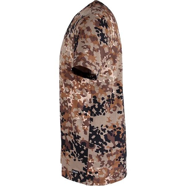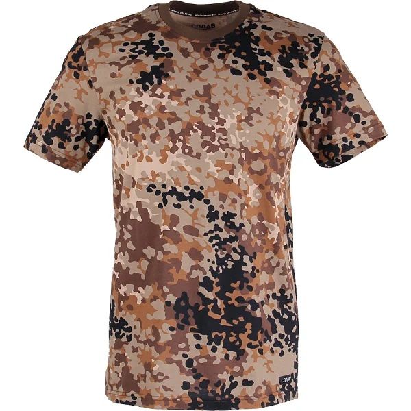Особенностью модели является камуфляжный принт, который придает футболке милитари стиль.