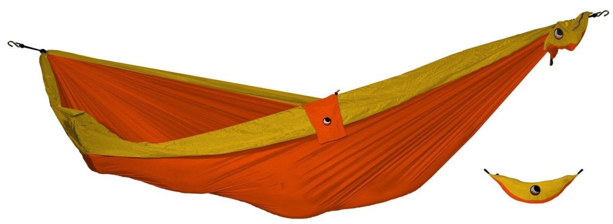 Двухместный походный гамак, который легко упаковывается в компактную сумку-полумесяц.