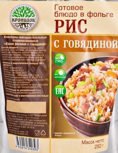 Читать все статьиГотовое блюдо «Каша рисовая с говядиной» (Кронидов)