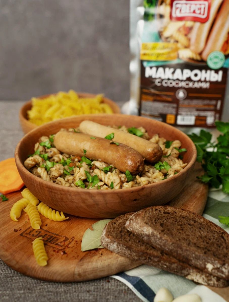 Читать все статьиГотовое блюдо «Макароны с сосисками»
