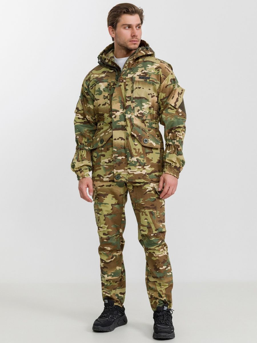 Специализированный универсальный костюм Горный, созданный на базе оригинальной модели по основам лекал Горки-Оригинал(ГРУ), но уже с учетом современных требований по эксплуатации одежды, предназначенной для самых различных предназначений (военно-тактических характеристик носки, активного отдыха на природе или просто эксплуатации в городском режиме в стиле «милитари»). Особенность данного костюма заключается в прекрасной «посадке» по телу как куртки так и брюк, а также многочисленных удобствах и нововведениях в самой модели. Например, удобные «крылышки» по спине не стесняют активных движений, позволяя увеличить амплитуду взмаха рукой, защитные сеточки в подмышечных впадинах, позволяют удобно регулировать температуру тела при активных действиях, парка костюма надежно защитит от ветра и холода благодаря двойной застежке, состоящей из суппатной (на пуговицах через канадский способ крепления) и мощной молнии «трактор» с 2м бегунком и особо прочной, крупной величиной зубьев N8..