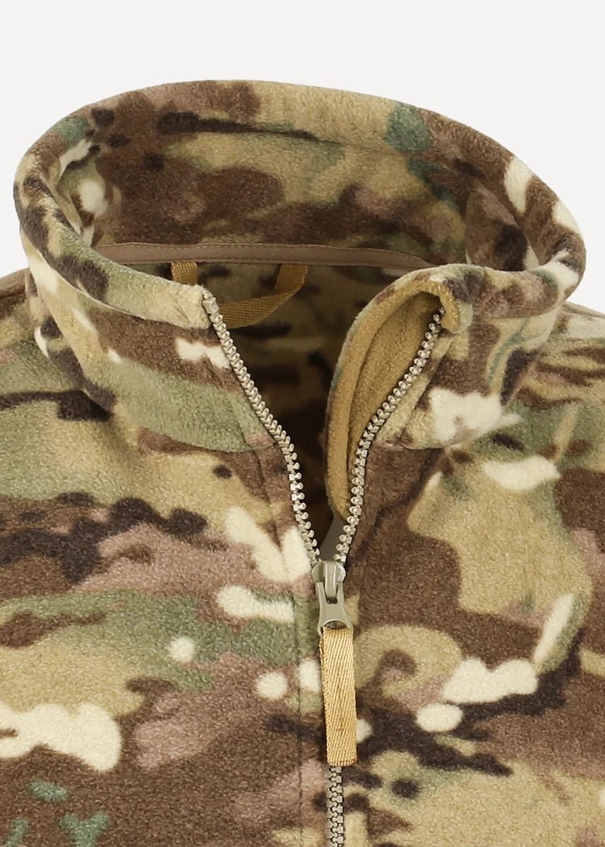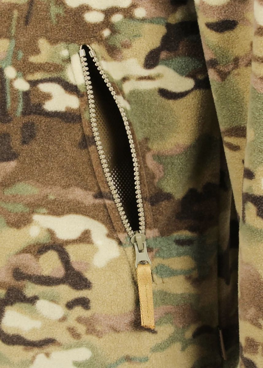 Центральная молния — однозамковая. В области воротника молния прикрыта планкой из флиса, сверху перегиб для защиты подбородка