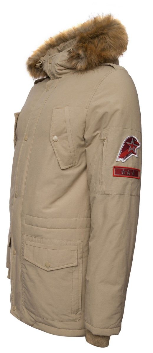 Цвет ткани – бежевый. Размерный ряд широкий – предлагаются детские и взрослые размеры. Молния защищена планкой, количество основных карманов – два. Также предусмотрены другие карманы, включая внутренние. Материал хорошо зарекомендовал себя в носке, не мнется и не портится длительное время, прекрасно защищает от воздействия внешней среды, погодных факторов. Рукава оформлены трикотажными манжетами, защищающими от ветра и влаги.