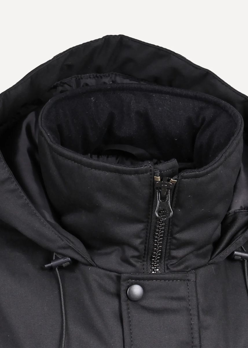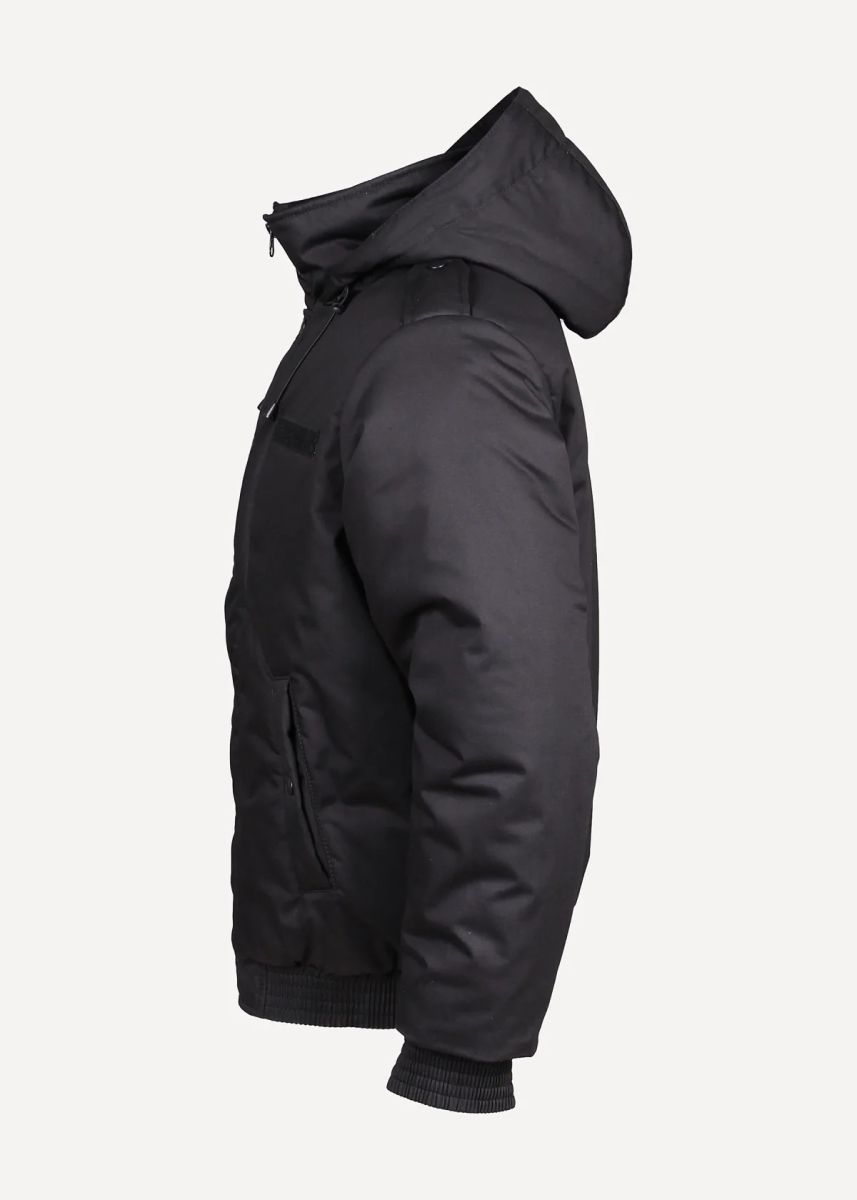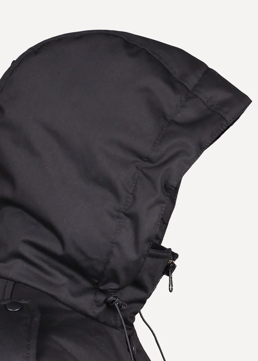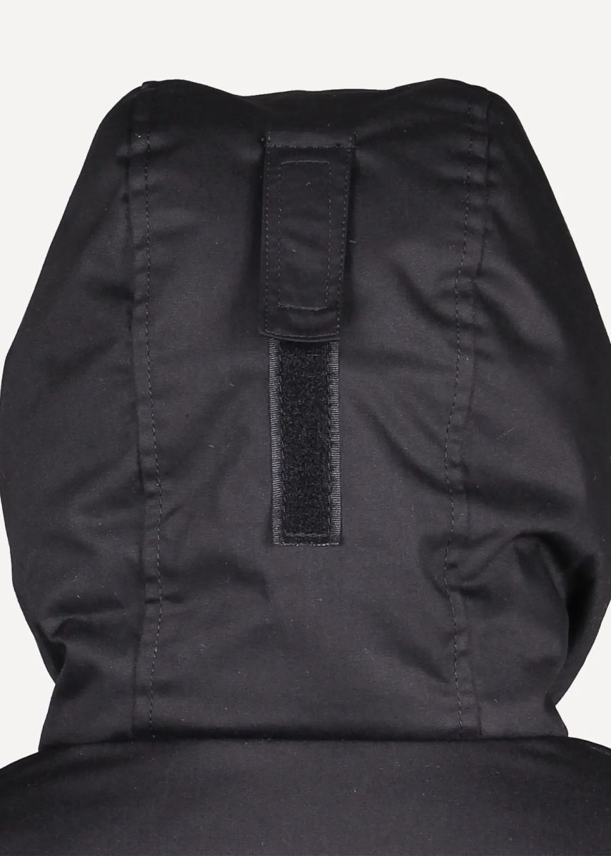 Капюшон регулируется по овалу лица при помощи резинового шнура с фиксатором и по объему при помощи паты с липучкой