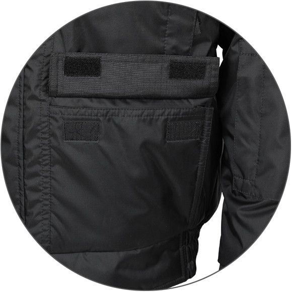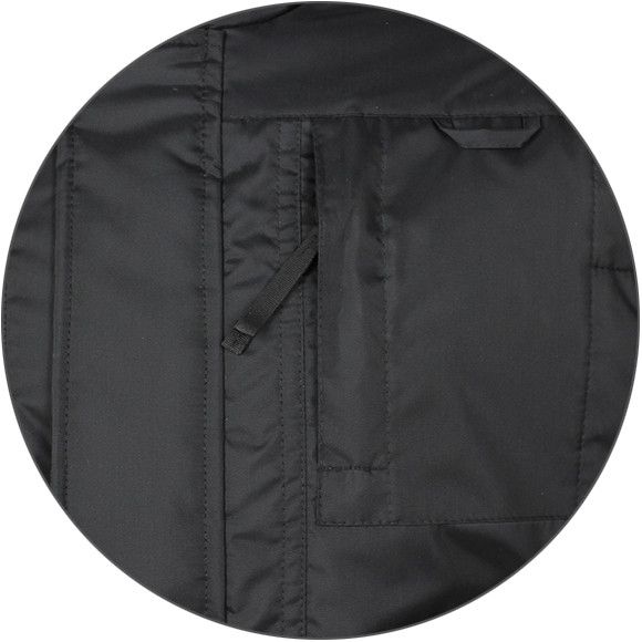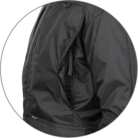 Куртка оснащена четырьмя карманами на груди и двумя внизу, а также одним внутренним и одним скрытым карманом с легким доступом под пистолет со страховочным шнуром для него. Подкладка из таффеты обеспечивает мягкость и комфорт при ношении.