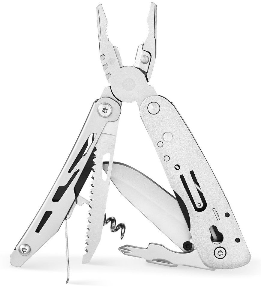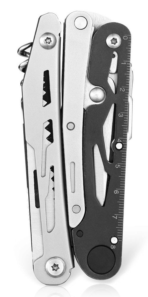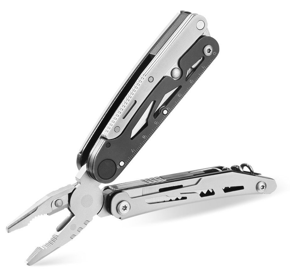 Универсальный мультитул пригодится в туристическом походе, в экстренной ситуации, для ремонта или для решения бытовых и рабочих вопросов. Без коробки инструмент весит 323 грамма. Инструменты изготовлены из нержавеющей стали. Мультитул открывается с помощью замка Button Lock.