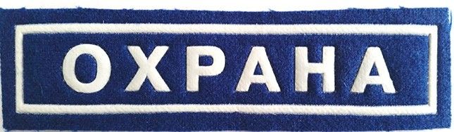 Читать все статьиНашивка на грудь Охрана 110х23мм цветное сукно пластик