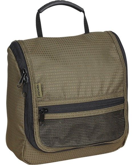 Основное отделение имеет карманы из сетки, позволяющие вертикально размещать флаконы с шампунем и другими гигиеническими средствами