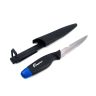 Рукоять ножа выполнена из пластика, что делает его удобным и безопасным в использовании. Она не скользит в руке и обеспечивает надежный хват.