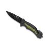 Клинок модели выполнен из высококачественной нержавеющей стали стали 8CR14 с твердостью ±55 HRC. Благодаря содержанию хрома сплав известен своей прочностью, устойчивостью к коррозии и легкостью в затачивании. Профиль клинка типа Drop Point и прямая заточка обеспечивают отличные режущие характеристики и универсальность применения. Рукоять изготовлена из полипропилена (PP) и алюминия, что придает ей прочность и легкость. Полипропилен хорошо сопротивляется влаге, высоким температурам, коррозии и слабым щелочным и кислотным растворам. В рукоять также интегрированы стропорез и стеклобой, которые могут пригодиться в экстремальных ситуациях. Модель может похвастаться не только стильным внешним видом, но и функциональностью