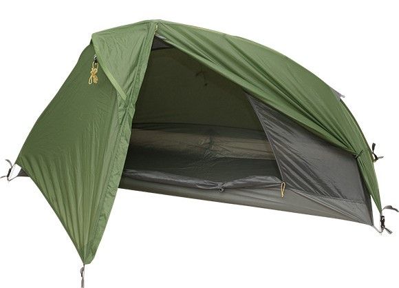Вход внутренней палатки продублирован противомоскитной сеткой, козырек вентиляции над входом дополнительно служит защитой от дождя