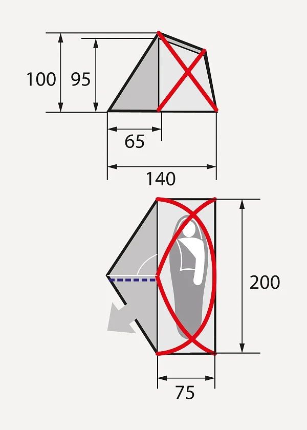 Размеры внешней палатки, тента (ДxШxВ): 200×140×100 см
