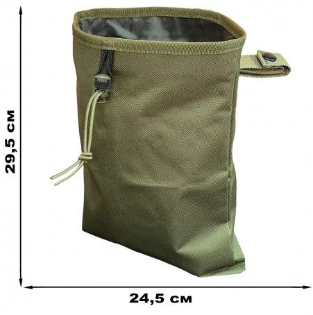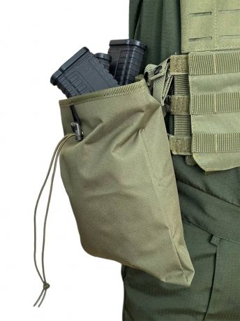 Подсумок для сброса магазинов (олива). Изготовлен из прочного материала Cordura 1000D, устойчивого к грязи, влаге, не подверженного гниению, разрывам и зацепам. Подойдёт под магазины различных серий оружия. Удобная утяжка вещмешка, крепление на платформу MOLLE, тактический ремень, варбелт, разгрузку. Предназначен для сброса пустых гильз, а также для пустых и полных магазинов. Может использоваться в качестве подсумка для аксессуаров и дополнительного снаряжения. Горловина подсумка затягивается. Удобно крепится на поясе.