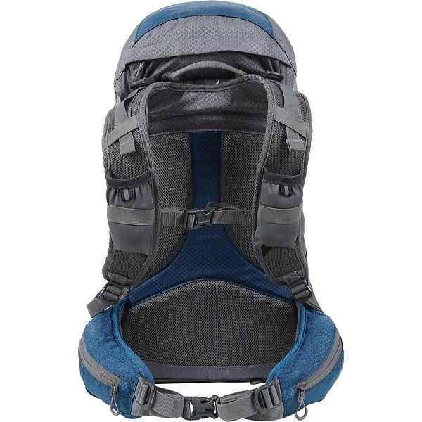 Максимальная вентиляция достигается за счет профилированных уплотняющих накладок на спине, обтянутых плотной сеткой, а также использования в лямках перфорированной уплотняющей пены с сеткой Air Mesh