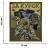 Шеврон «За Курск» - это декоративный элемент, который станет отличным дополнением к вашему снаряжению или экипировке. Он выполнен в зеленом цвете, что придает ему стильный и узнаваемый вид.