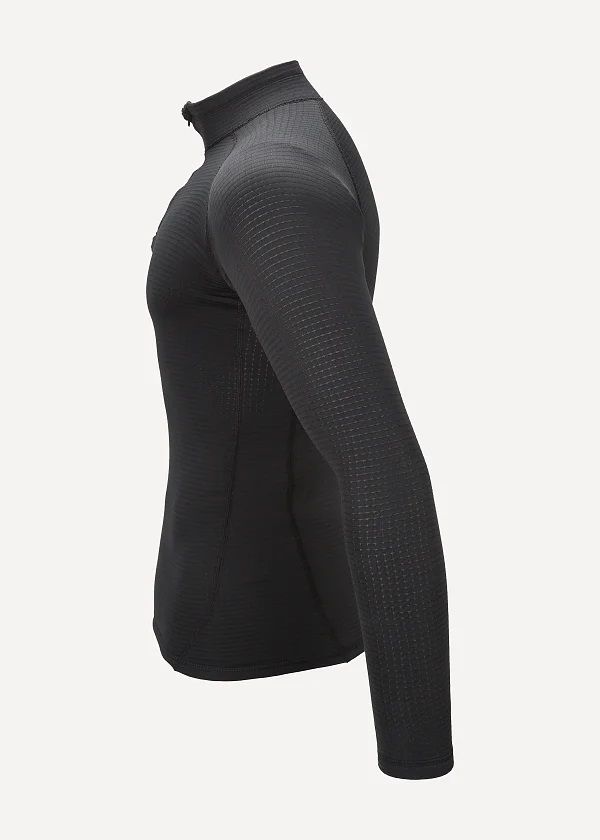 Материал Kinetix Grid имеет бикомпонентную структуру, обеспечивающую оптимальный баланс между влагоотведением и теплоизоляцией: разреженный ворс на внутренней стороне для быстрой транспортировки избыточной влаги во внешние слои, при этом оставляющий возможность частичного испарения для охлаждения, и внешнюю поверхность, оптимизированную для быстрого распределения влаги по большой площади